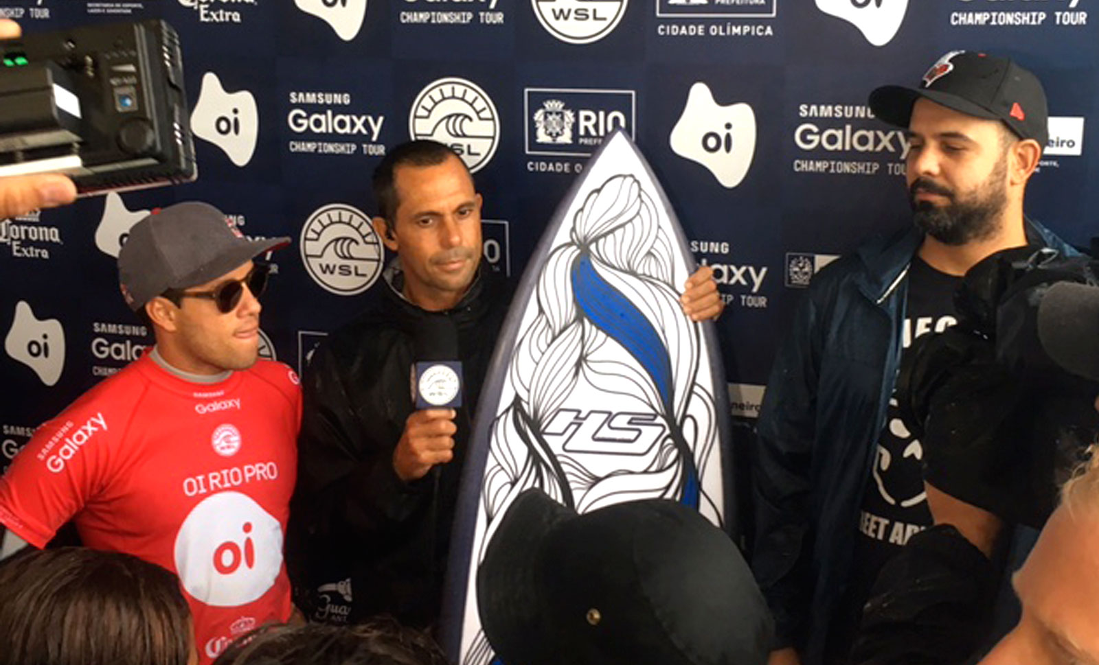 Bruno Big painted, during the championship stage in Rio de Janeiro, a surfboard for the world champion Adriano de Souza. The action was broadcast live on the official event website.